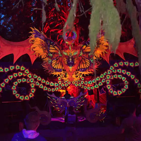 Crafted with intention and community spirit, our wooden stage is designed to live only as long as the festival itself. Every step upon it, every beat dropped, every chant uttered imprints it with meaning. It becomes a vessel of shared transformation.