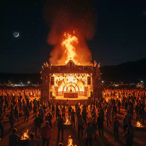As each Shiva Tempo festival draws to a close, we gather around the stage one last time for a final ceremony of release. With reverence, we set the stage alight, offering it back to the earth and sky. The fire becomes a mirror burning away what no longer serves and illuminating the path forward.